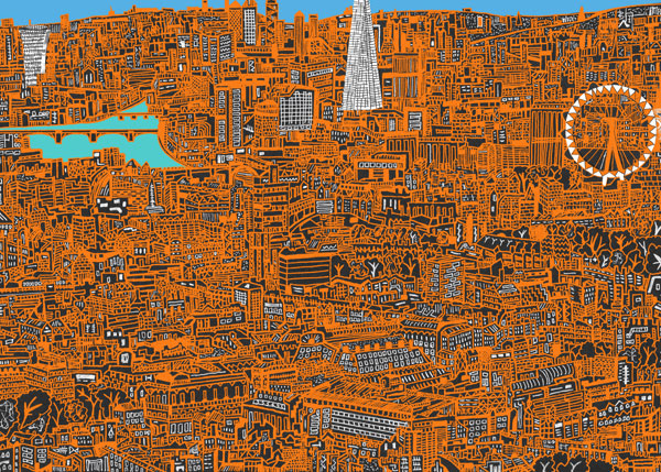 London hand-drawn skylineThis is a detailed and I think fun picture of the London skyline, with the Shard, Walkie Talkie building and the London Eye. It has been drawn by hand with white ink on a black background with the buildings mentioned above hand-cut and collaged in. Original hand-drawn picture If you would like to buy this one off original picture please use the following Paypal button: Mounted sie: 40cm x 30cm £450 (Free postage) Reproduction Print Mounted, signed and cello wrapped £19 Size 30cm x 21cm Please either put orange or b and w in picture title Special Large limited edition printI have produced a limited edition series of 50 large prints of this picture, which are signed and numbered. Edition of 50 Mounted size: 20 x 16 inch Picture size: 16 x 11 inch £75 packing and delivery only £2.50 |